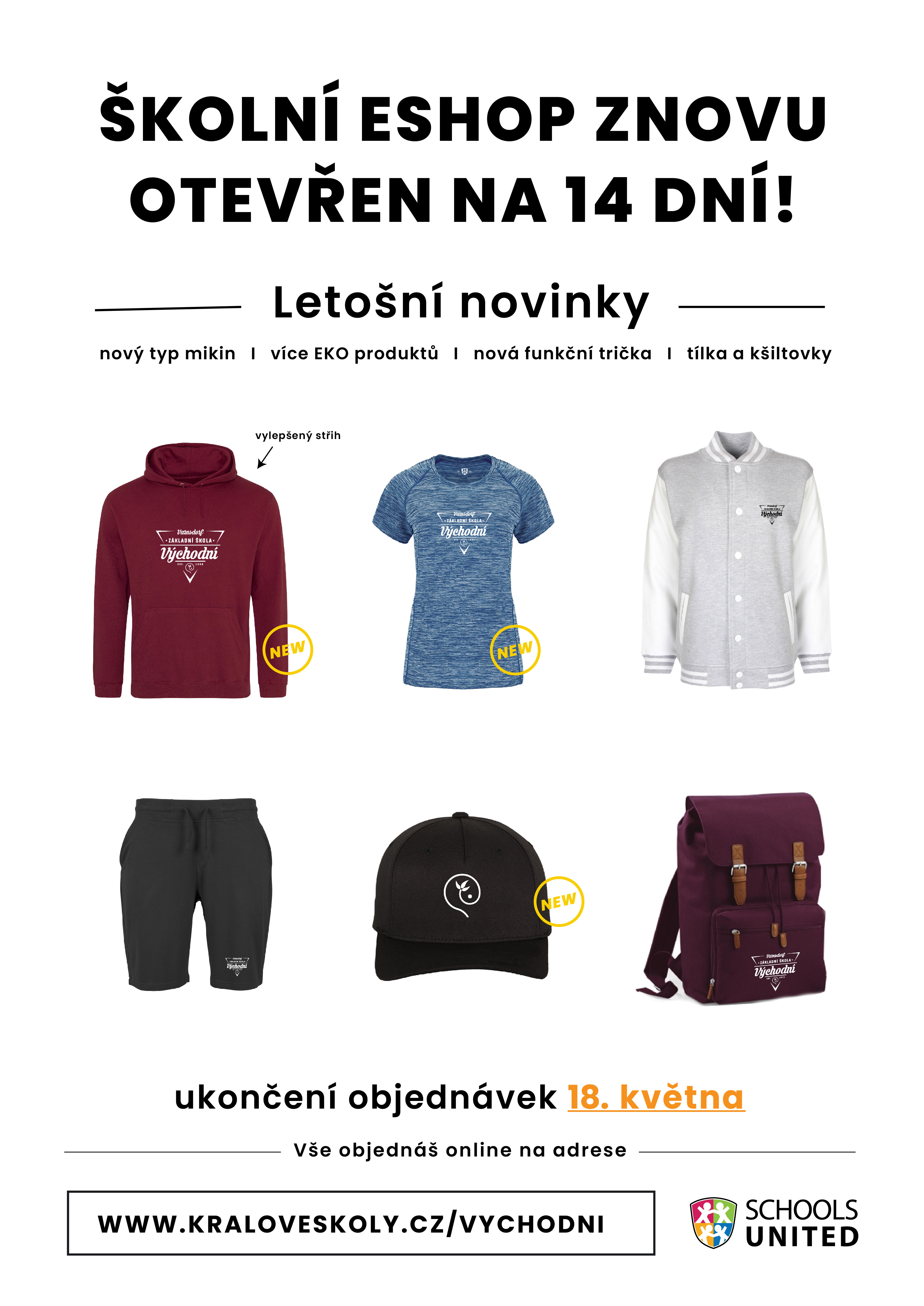 Od 4.5. je opět otevřen e-shop se školní kolekcí oblečení.