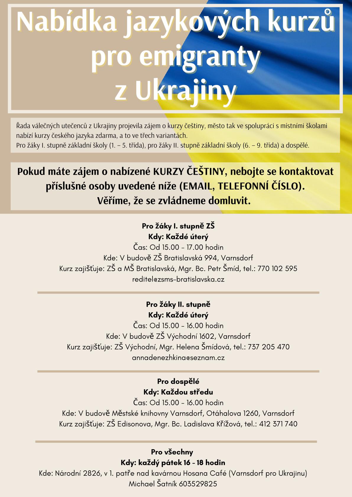 Město Varnsdorf ve spolupráci s varnsdorfskými školami zajistilo od dubna jazykové kurzy pro nově příchozí z Ukrajiny (ukrajinské děti, jejich rodiče, patrony atd.).