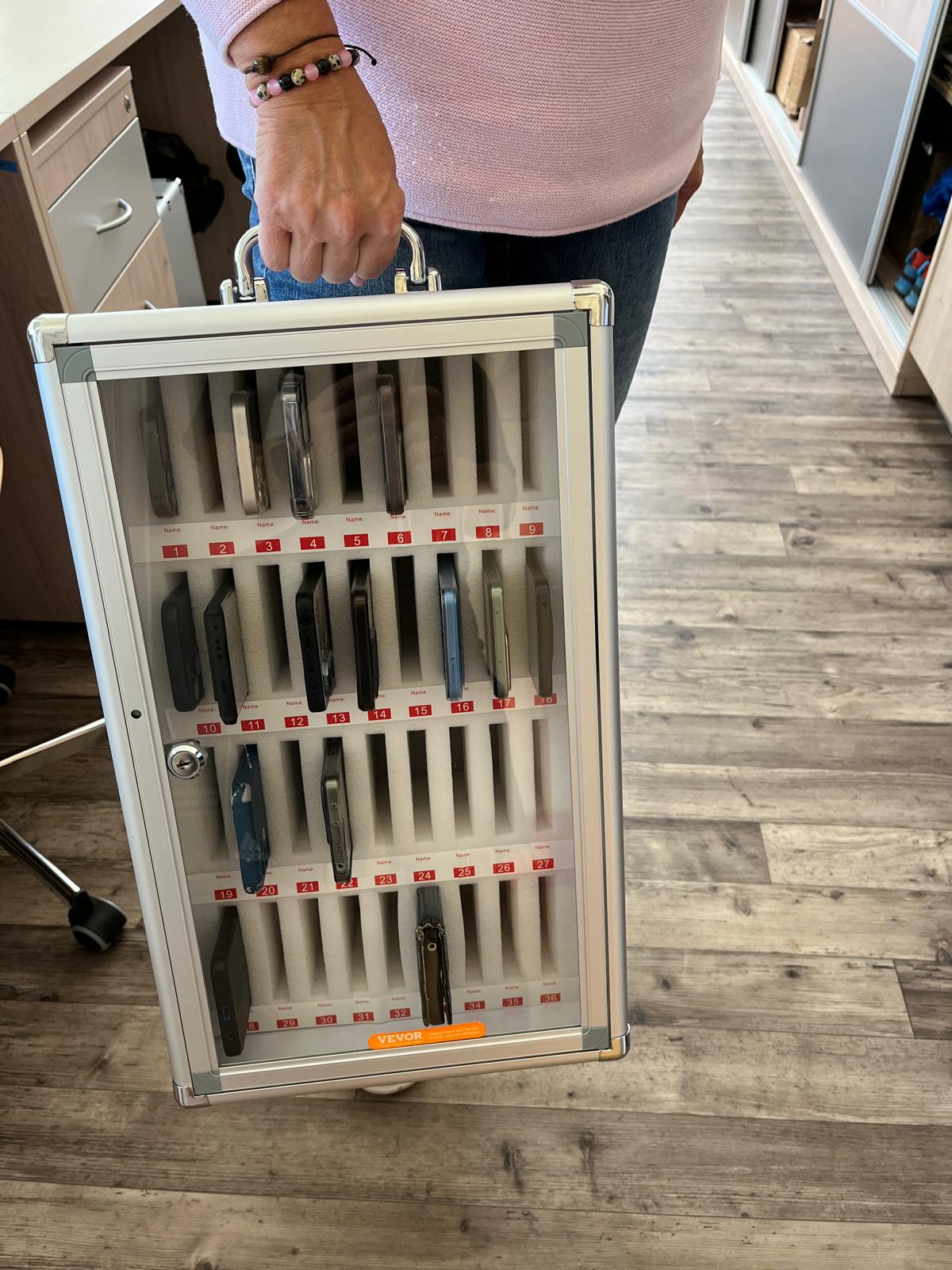 Škola pořídila pro žáky 5. až 9. třídy novou bezpečnostní skříňku na mobilní telefony. Každý žák při příchodu do školy svůj telefon odevzdá a uloží jej do uzamykatelného boxu. Cílem tohoto opatření je podpořit soustředění během vyučování a omezit rozptylování. Skříňka zároveň zajišťuje bezpečné uložení zařízení po celou dobu školního dne. Žáci si své telefony vyzvedávají až po skončení výuky.