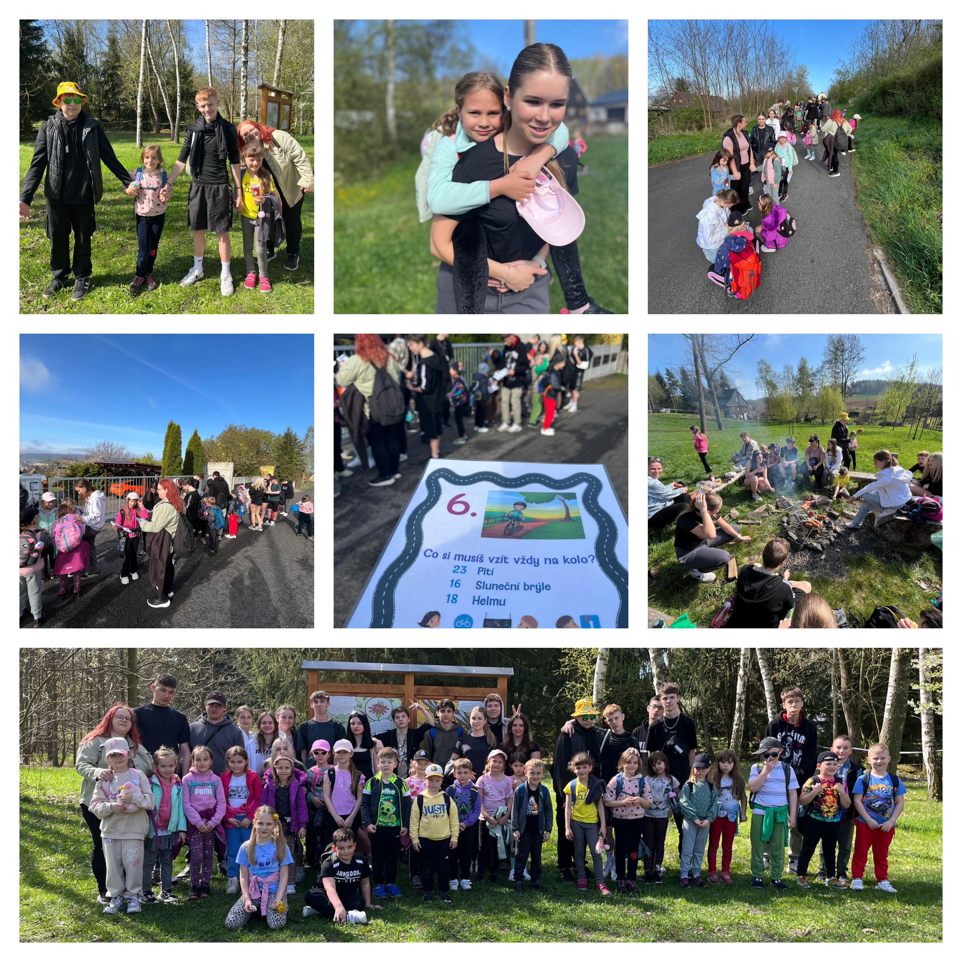 Ve středu 16.4. se žáci 9. a 1. třídy vydali na společnou procházku, která spojila příjemné s užitečným. Cestou nejenže objevovali okolí školy, ale také plnili otázky z dopravní výchovy. Deváťáci pomáhali prvňáčkům orientovat se v dopravních značkách, bezpečně přecházet silnici a správně odpovídat na připravené úkoly.