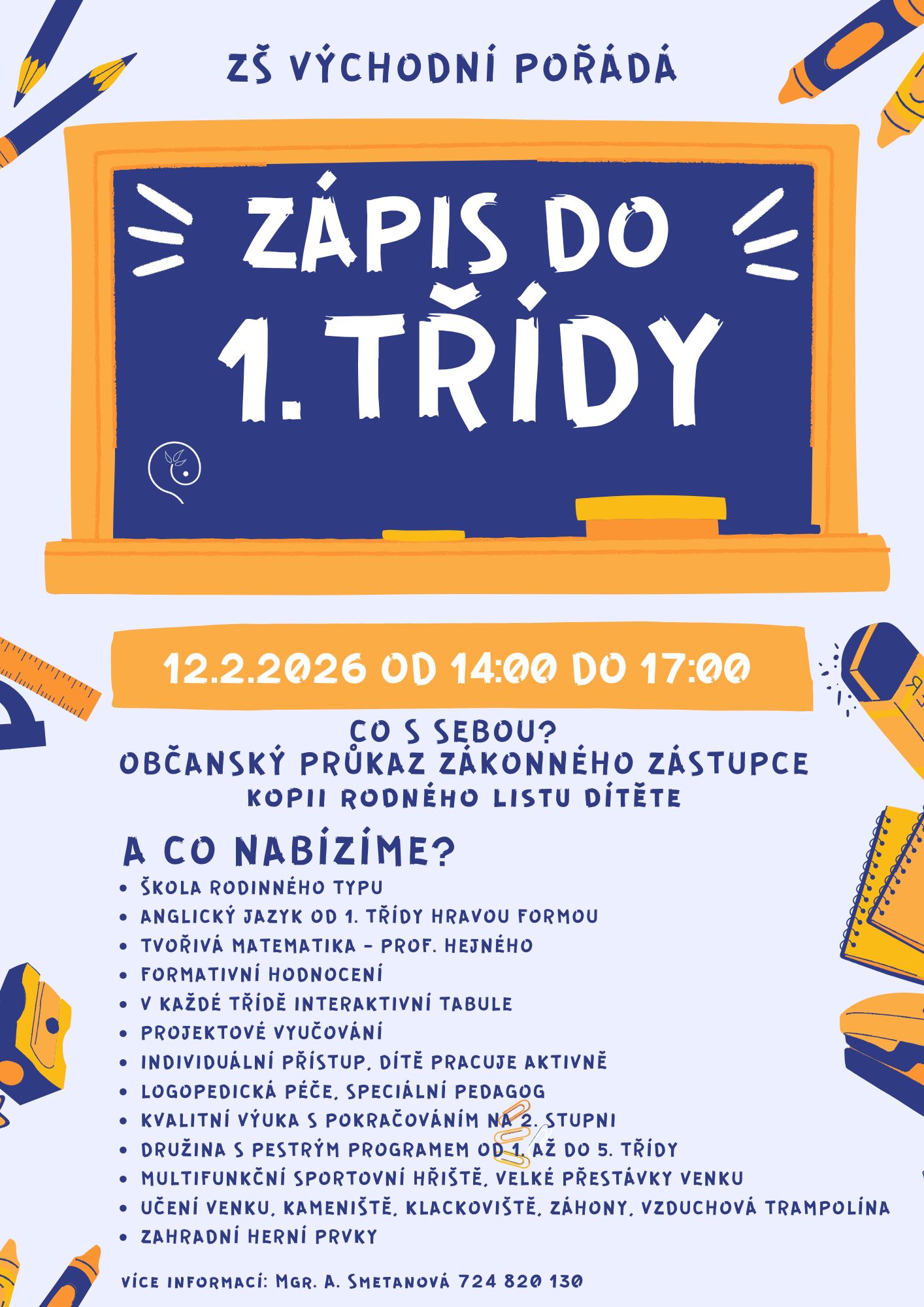 čtvrtek: zápis do 1. třídy 14:00 - 17:00