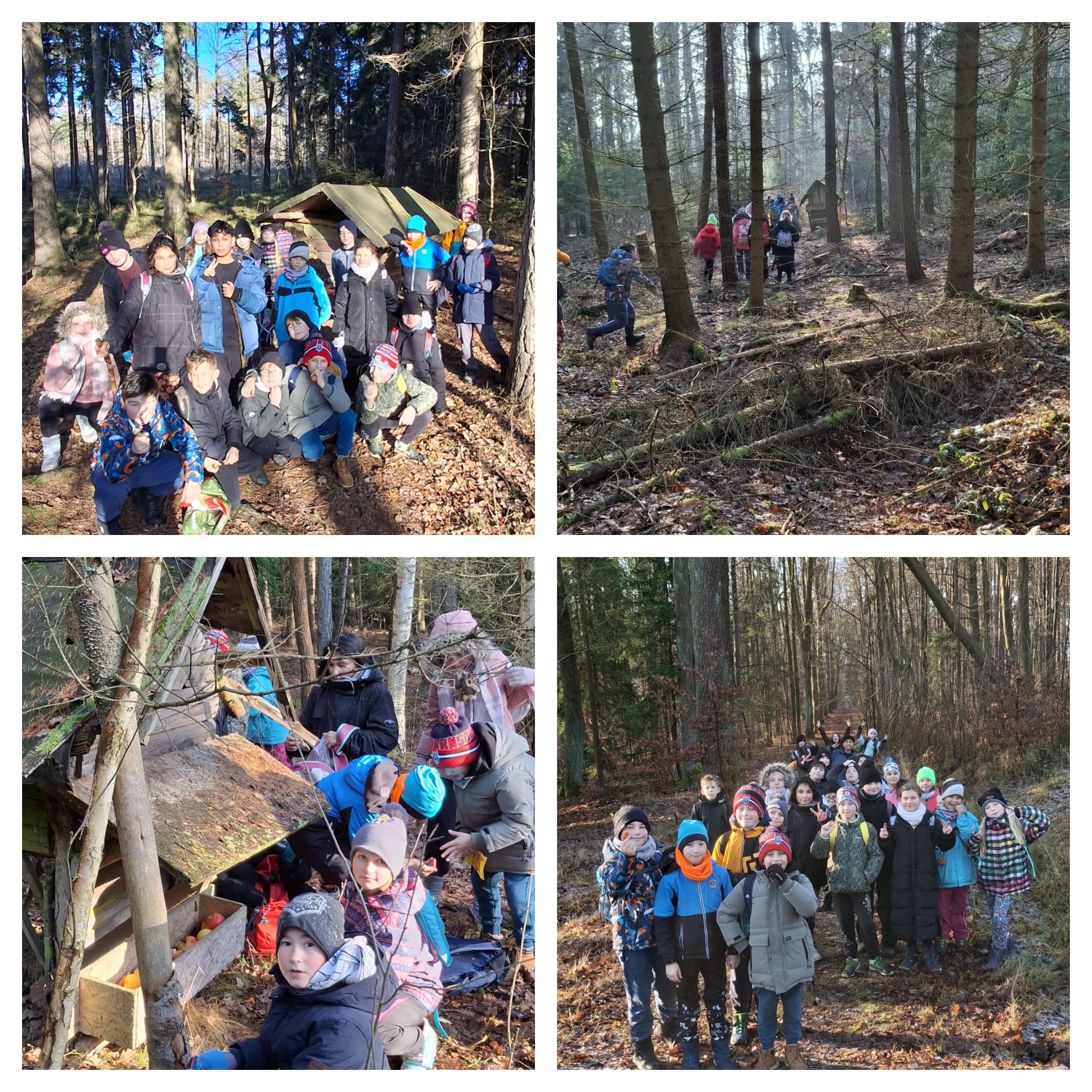 Čtvrťáci byli v lese s nadílkou pro zvířata. Přinesli jim mrkev a jablka, aby měla v zimě co jíst. Všichni měli radost, že mohli zvířatům pomoci.