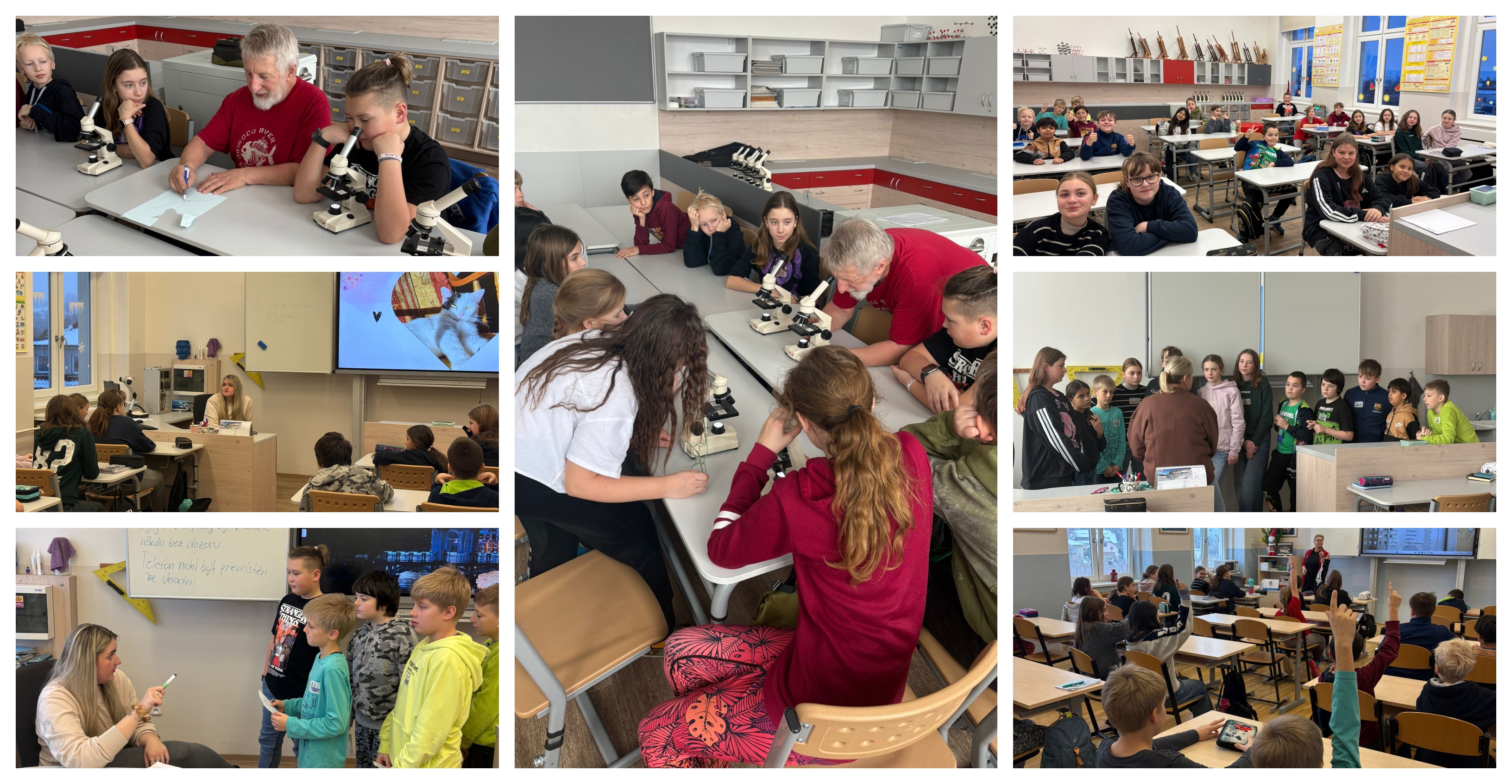 V hodině českého jazyka s paní učitelkou Annou Riedelovou se žáci ocitli v roli detektivů a společně řešili případ ztraceného mobilního telefonu. S paní učitelkou Juricovou se v dějepise vydali do dob dávno minulých, konkrétně do období vlády Marie Terezie. Matematika s paní učitelkou Alenou Riedelovou probíhala hravou formou matematických her. V přírodopise se pak s panem učitelem Holečkem naučili pracovat s mikroskopem a zkoumali žížalu zblízka.
