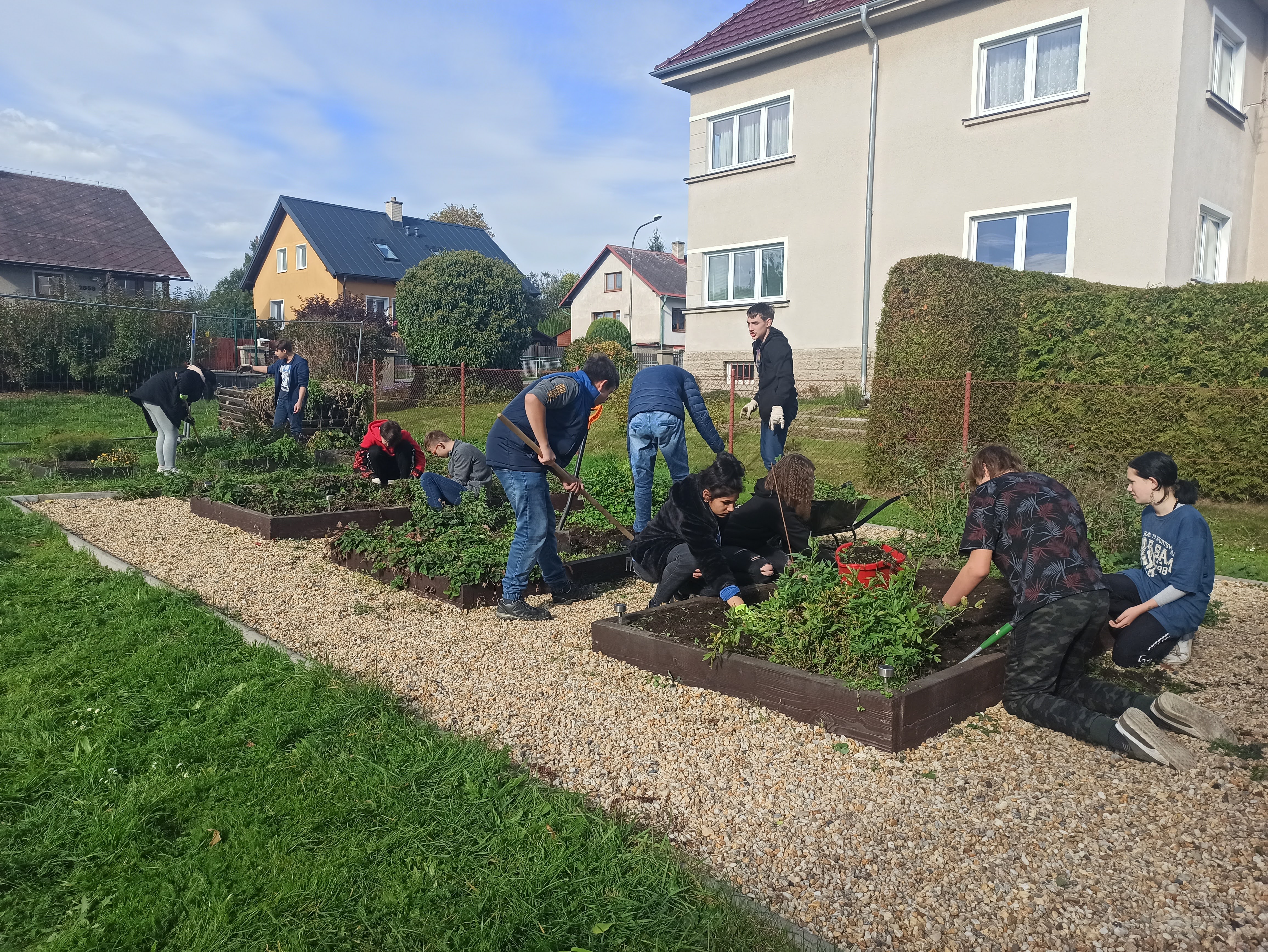 Sklidili jsme brambory, vypleli záhonky a připravili nové políčko na sadbu česneku.