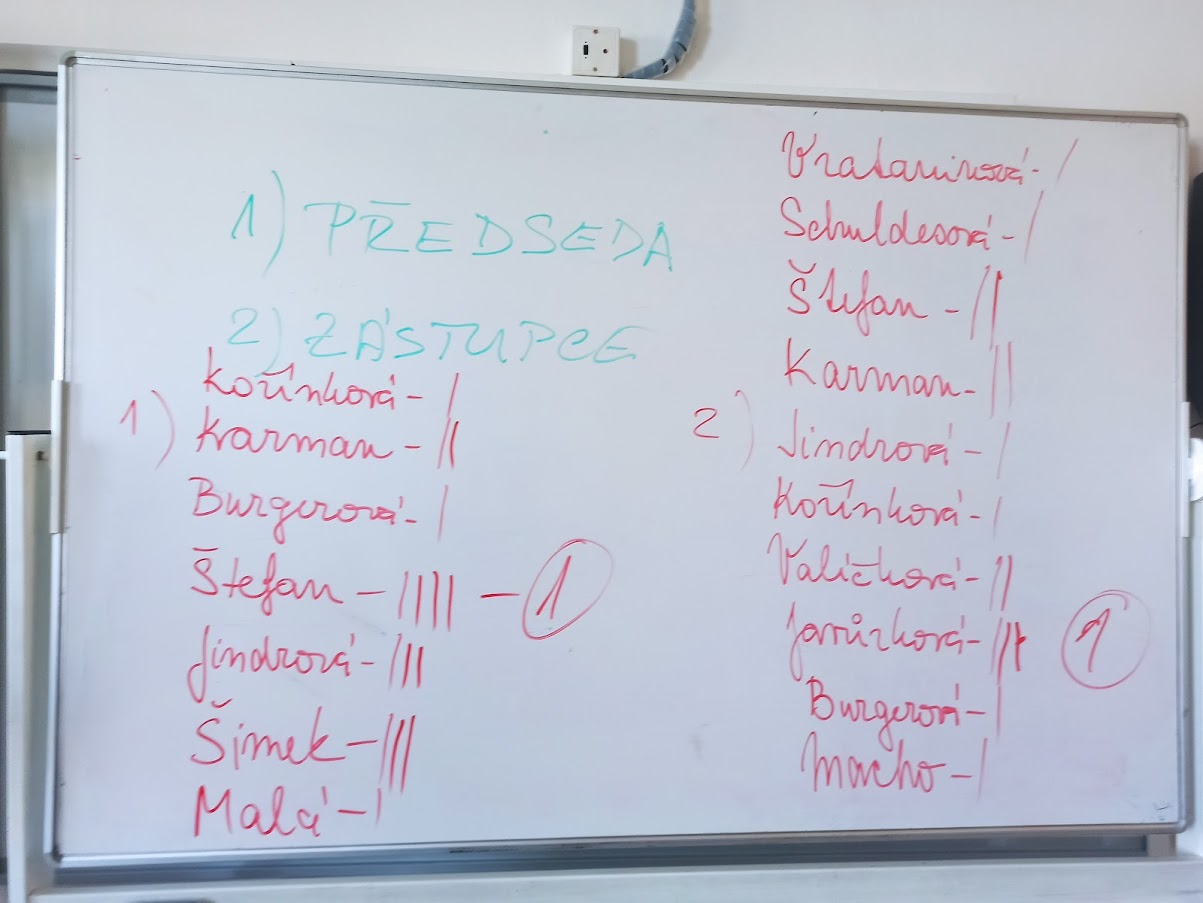 V pondělním hlasování byli zvoleni: předseda: Jakub Štefan - 8.třída