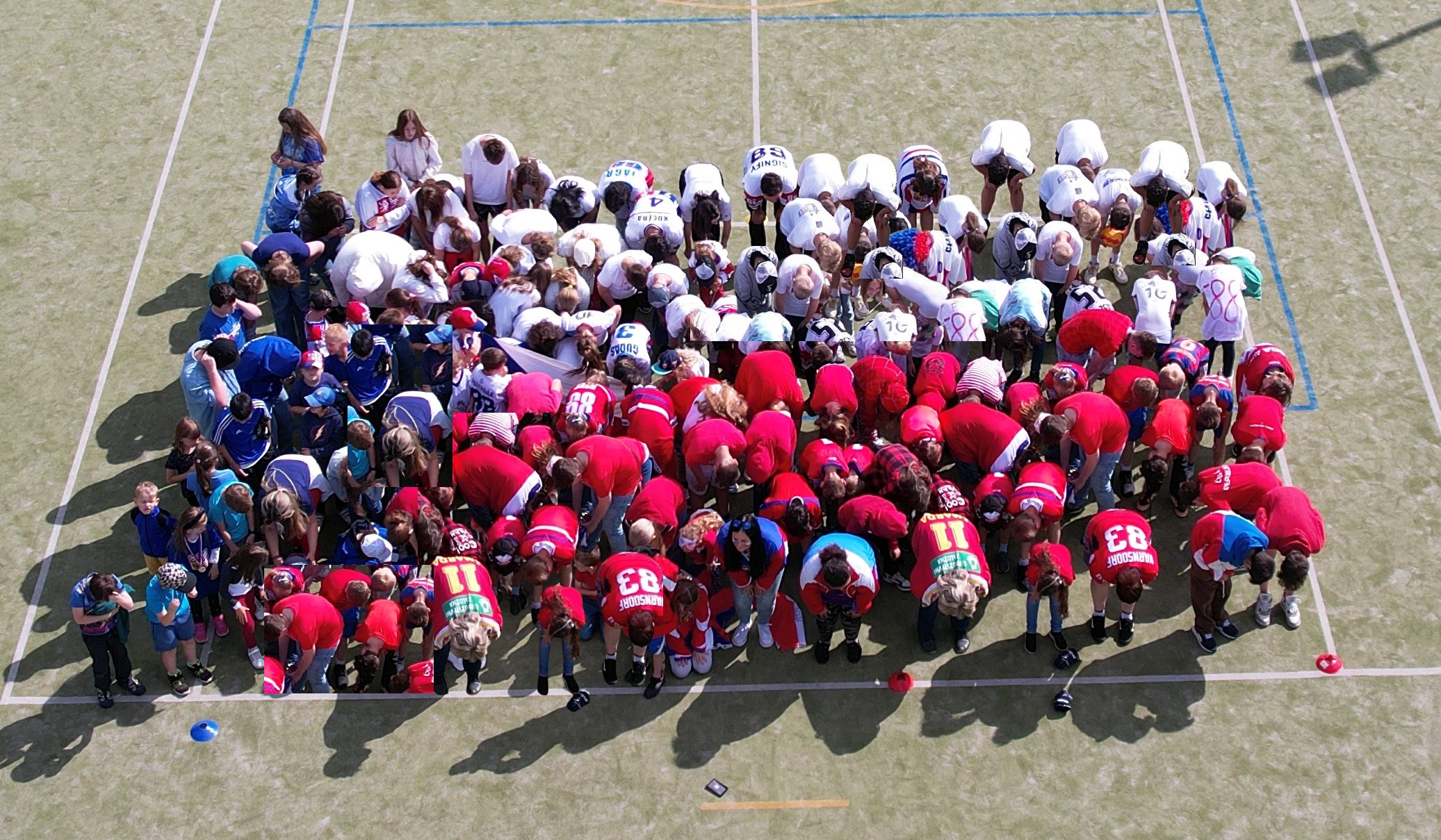 Žáci mohli dorazit buď v hokejových dresech nebo v barvách trikolory. O velké přestávce jsme vytvořili velkou státní vlajku.