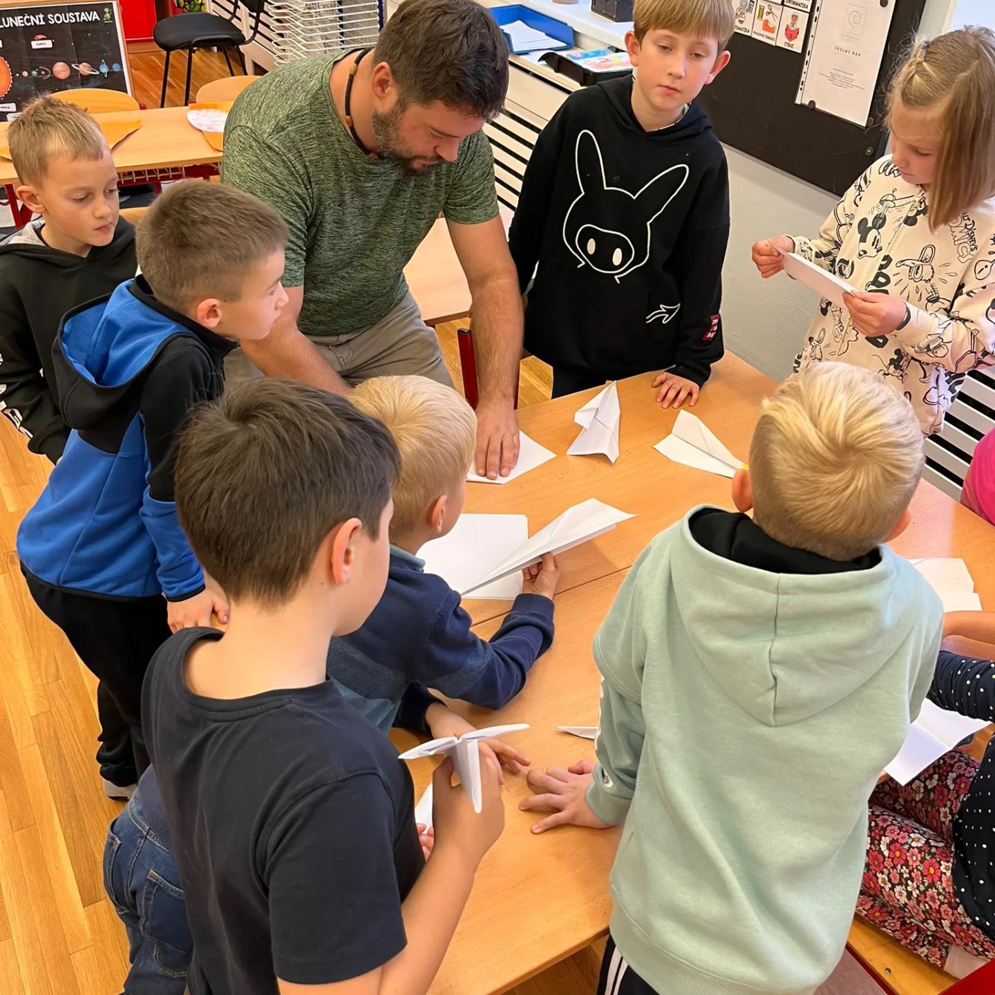Ve středu 8.11. měly děti ze 4.oddělení ŠD Vlaštovkové odpoledne s panem učitelem Vokálkem. Naučily se skládat vlaštovky a následně je posílaly a soutěžily, která Vlaštovka doletí nejdál.
